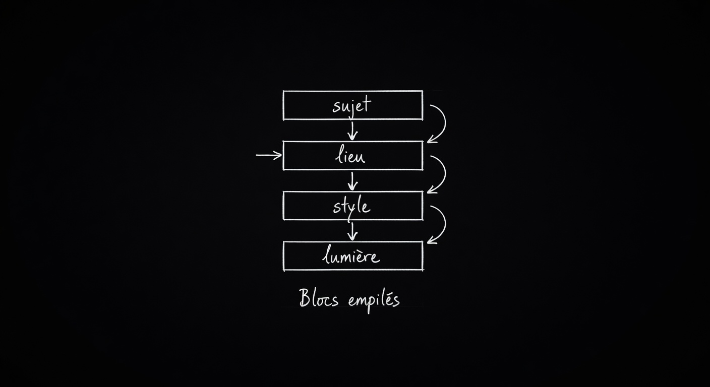 Chaque bloc apporte de l’information. Sans sujet, l’IA invente. Sans style, elle choisit au hasard. Sans lumière, l’ambiance est souvent plate.