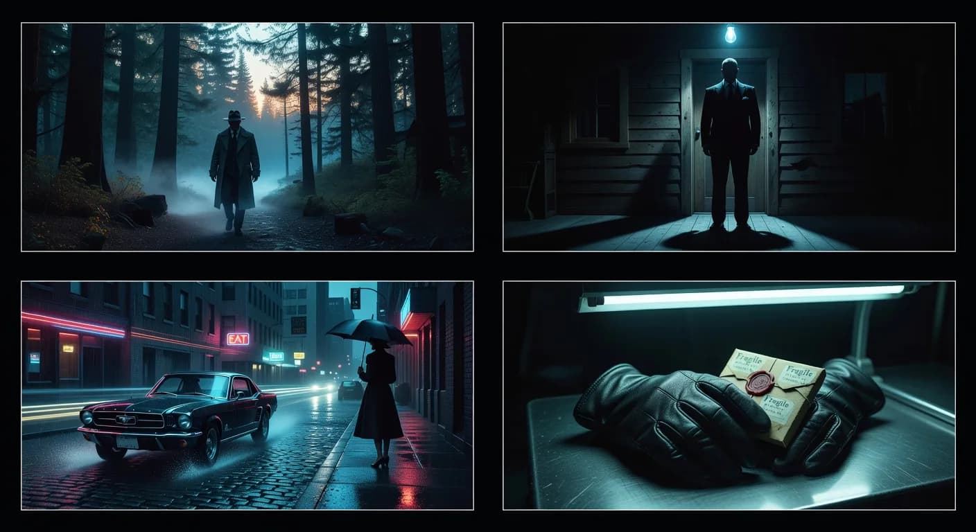 Définis une fois : palette (muted, bleu nuit, etc.), type de lumière (low key, golden hour), focale dominante (35mm), style (cinematic stills, film grain). Ces termes seront dans chaque prompt. Voir structurer un prompt et éclairage. Pour un moodboard, c’est la même base.